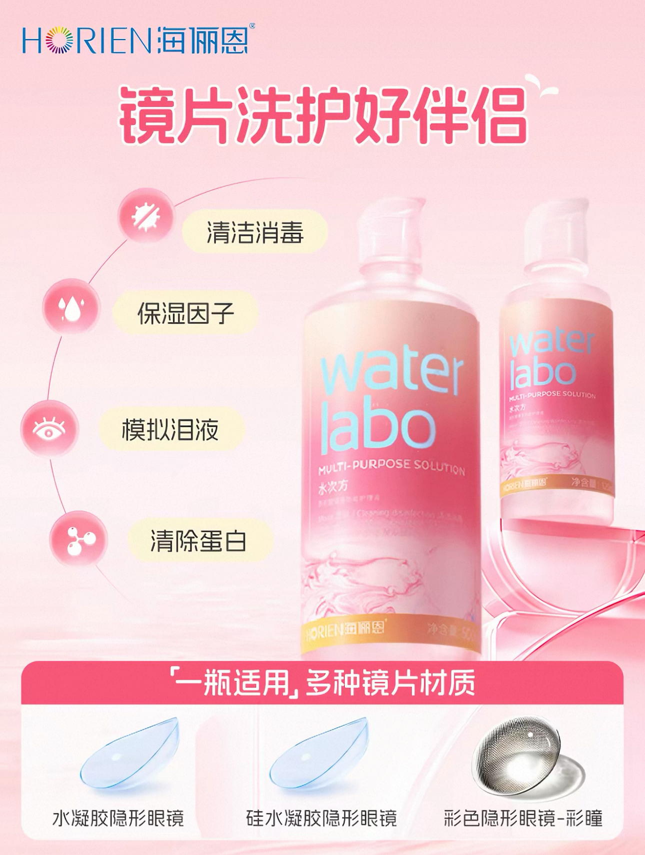 海俪恩隐形眼镜护理液美瞳专用女水次方小瓶水润杀菌清洁